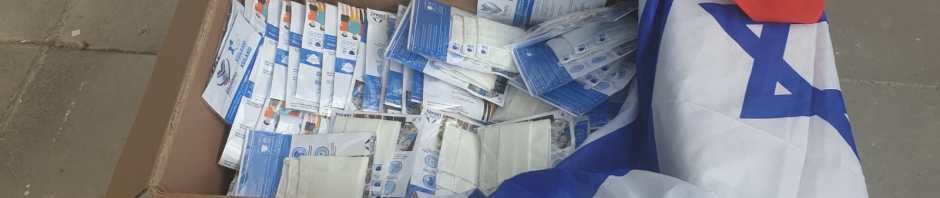 100% Israelsk fremstillede og statsautoriserede mundbind. DJV fortsætter sine indkøb af forskellige typer mundbind til vores israelske partnere. I dag kl. 14.00 strammer Israel sin nedlukning. DJV håber at mundbind vil være med til at stoppe Israels høje smitteprocent. Du kan støtte Dansk-Jødisk Venskab effektivt og billigt igennem medlemsskab på http://www.djvenskab.dk – det koster kun 100 kr. årligt.